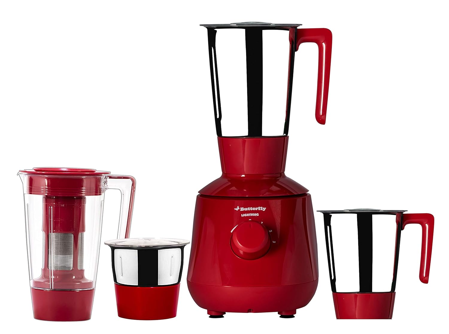 Butterfly Lightning 750-Watt Mixer Grinder with 4 Jars (Red)