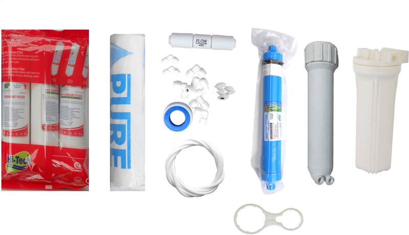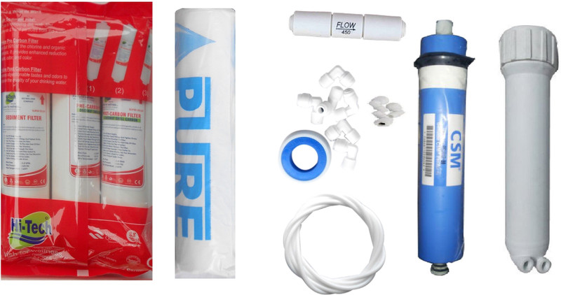 Hi Tech 1 Year RO service Kit with Inline set, CSM 80 GPD membrane, Housing...