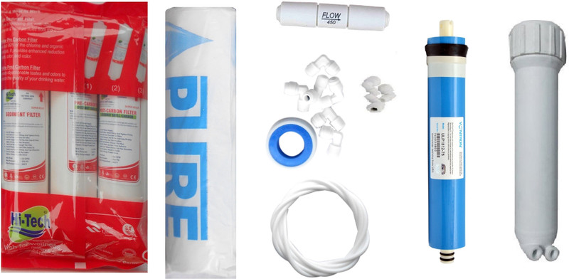 Hi Tech 1 Year RO service Kit with Inline set, Vontron 75 GPD membrane, Hou...