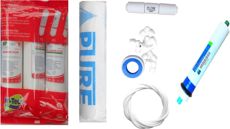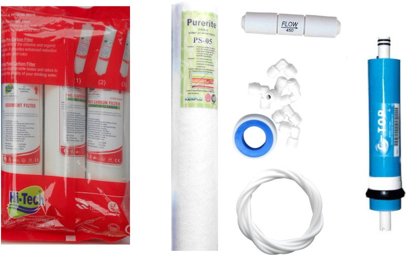 Hi Tech 1 Year RO service Kit with Inline set, Pentair 75 GPD membrane, Pur...