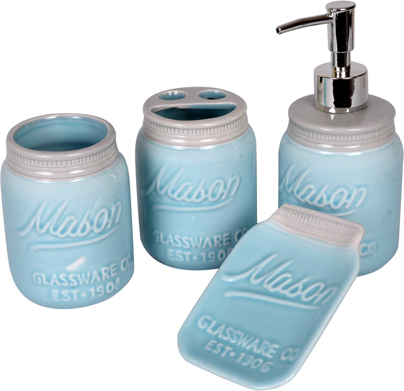 Scrafts Mason Blue Set of 4 Ceramic Bathroom Set Washing Machine Soap Dispe...