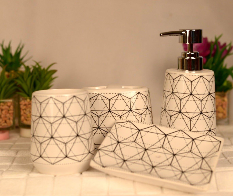 Scrafts Lines Abstract D1 Set of 4 Ceramic Bathroom Set Washing Machine Soa...