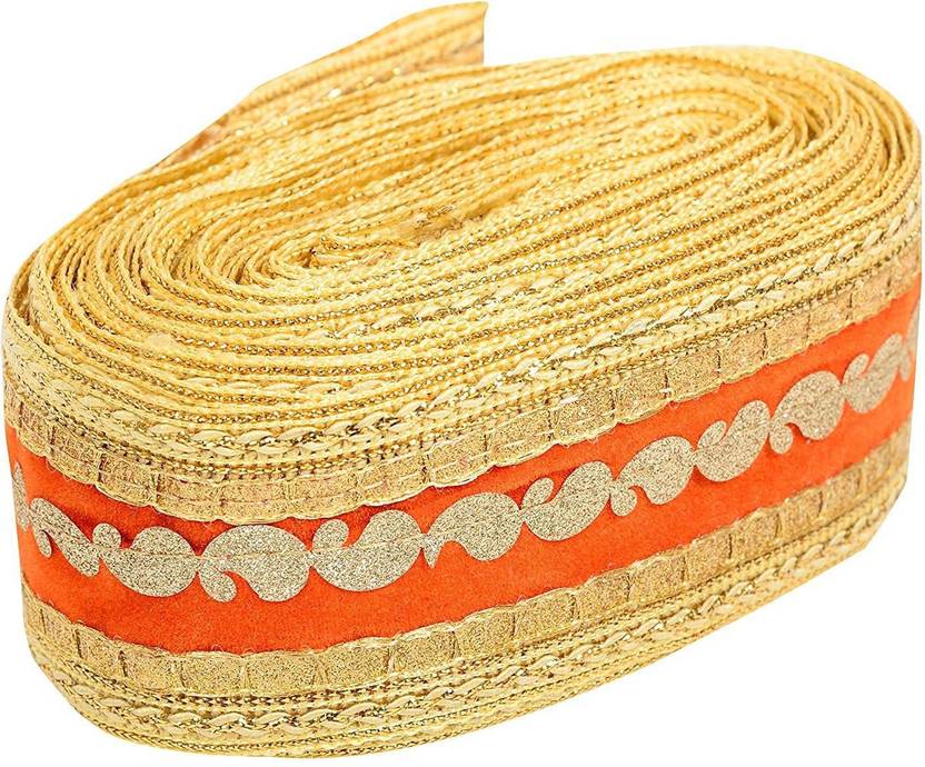 hariyanilace lace 026 orange velvet lace for saree, dupatta ,craft Saree Fa...