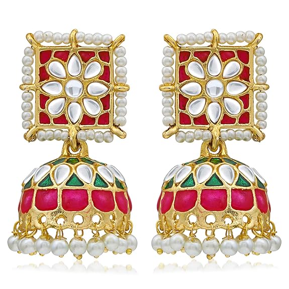Sukkhi Ethnic Brass Pearl Gold Plated Kundan Meenakari Jhumki Earring for W...