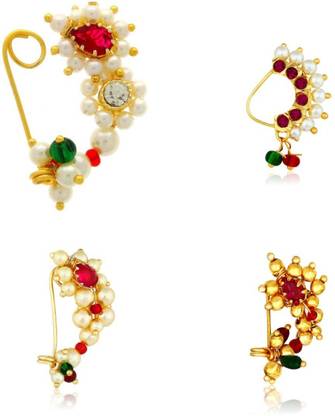 akshara jewels Cubic Zirconia Gold-plated Plated Brass Nose Ring