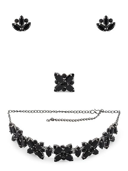 ZAVERI PEARLS Black Dazzling Stones Embellished Contemporary Necklace Earri...