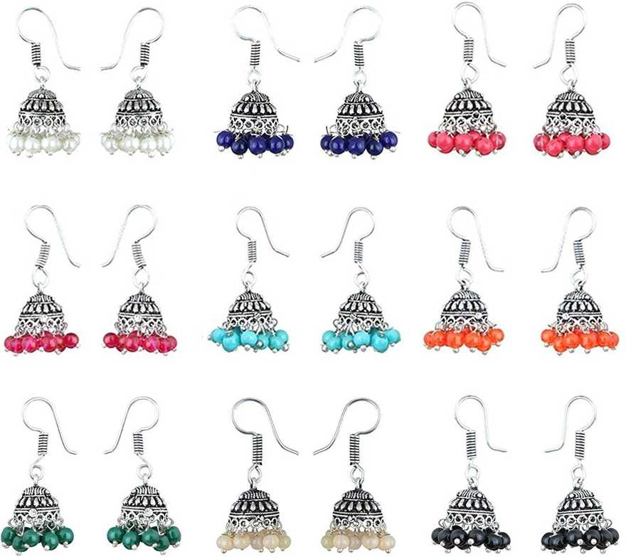 Multi-color Silver-Plated 18 Jhumki Combo Earrings Pearl Alloy Jhumki Earri...