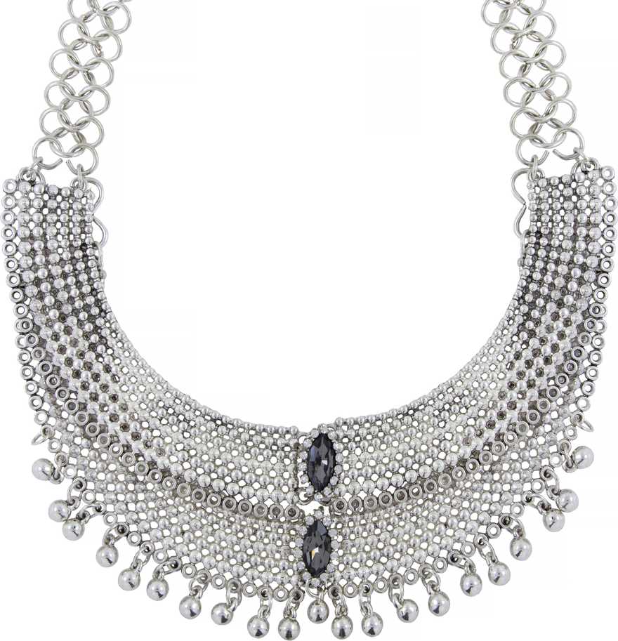 Oxidised Tribal Crystal Black Silver Plated Brass Necklace