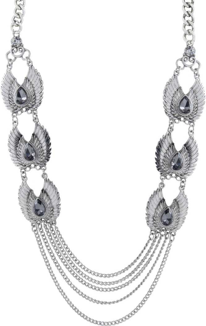 Oxidised Tribal Cubic Zirconia Black Silver Plated Brass Necklace