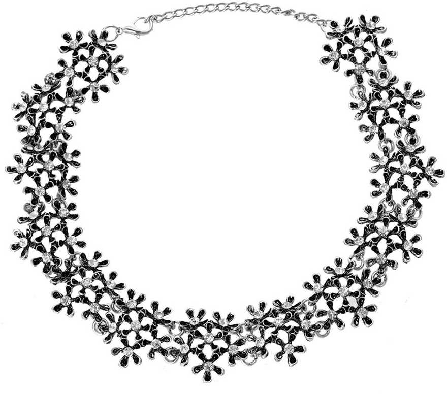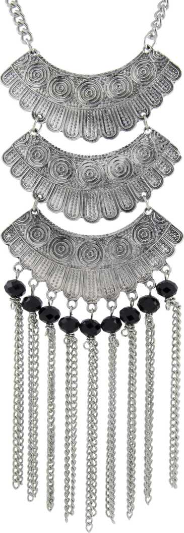 Tribal Bohemian Crystal Black Silver Plated Brass Necklace
