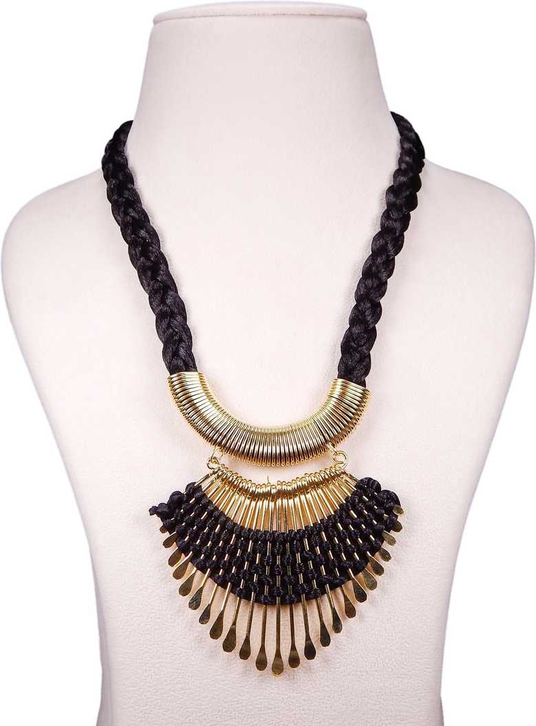 Traditional Tribal Black & Golden Charms Pendant Silk Thread Rope Necklace ...