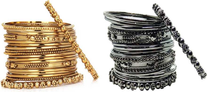 Metal Black Silver, Gold-plated Bangle Set (Pack of 2)