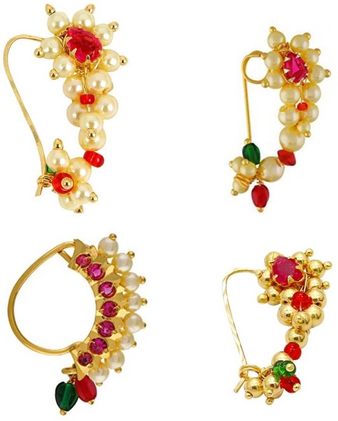Zaveri Pearls Silver Plated Zinc Nose Ring (Pack of 4)
