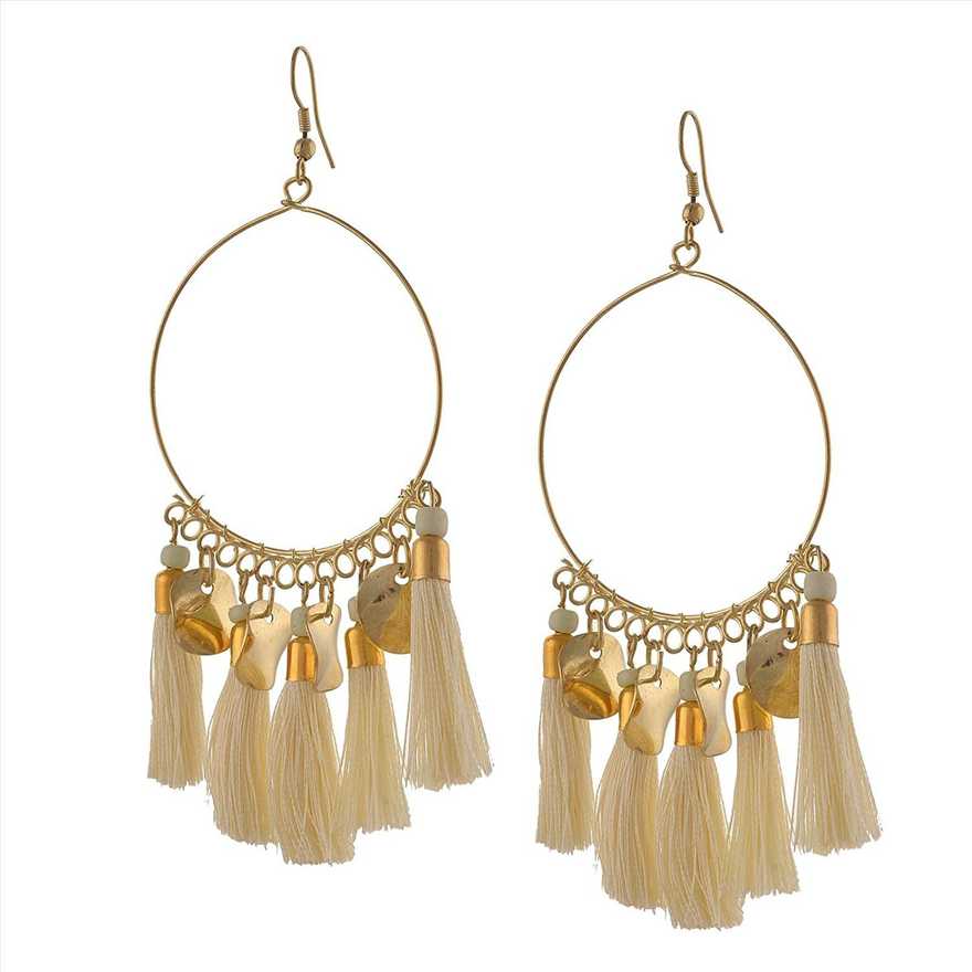 Boho Gypsy Meena Tassel Earring for girls and women - WHITE Alloy Drops & D...