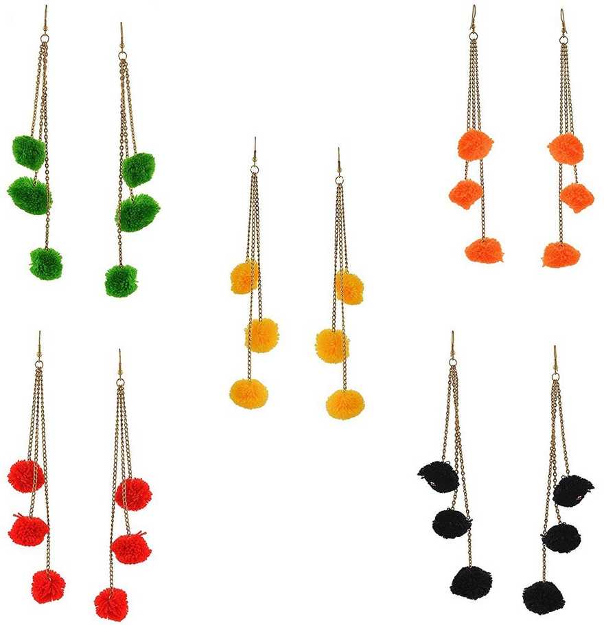 3 Tassel Pack Of 5 Pompom Fabric Drops & Danglers, Tassel Earring