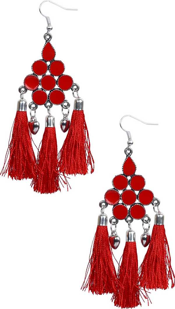 Boho Gypsy Meena Tassel Earring for girls and women - RED Alloy Drops & Dan...