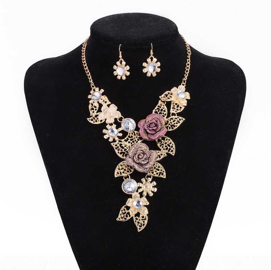 Fashion Party Wear Rose Flower Choker Gold-plated Plated Alloy Necklace Set