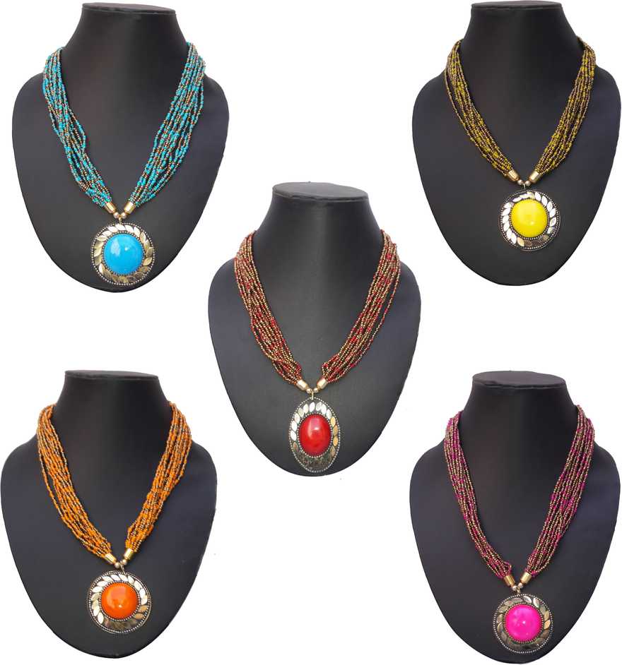 Hand Crafted Beads and Brass Plated Necklace Pack of 5 Alloy Necklace