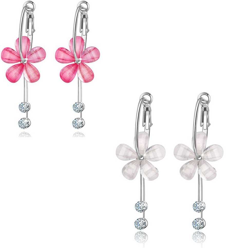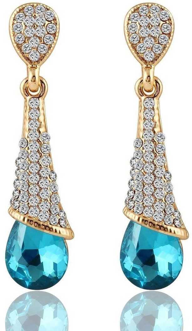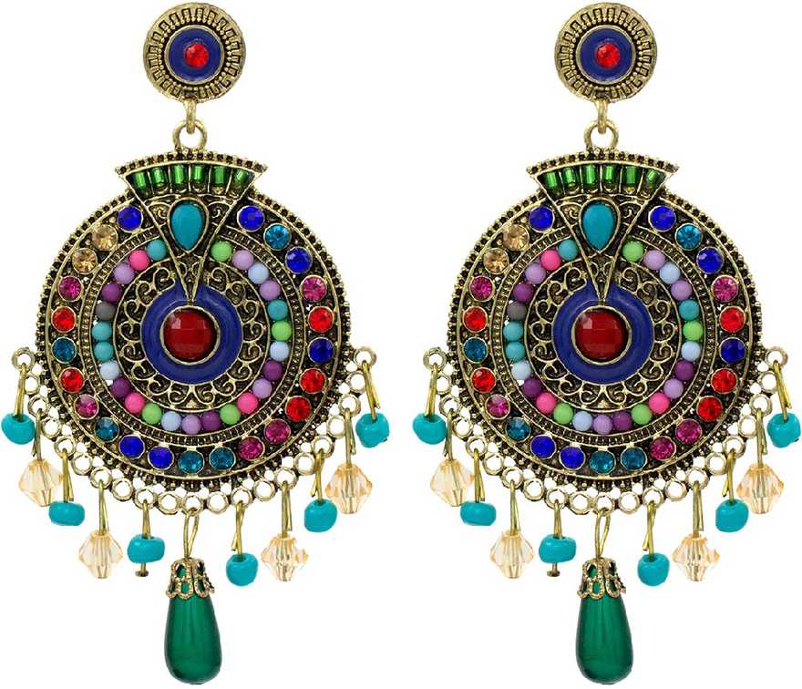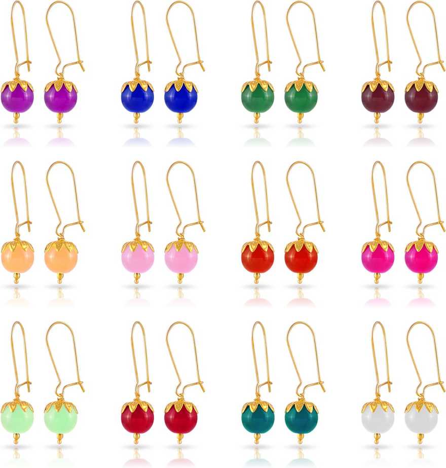 Combo of 12 Pairs of Multicolour Bright Glass Stone Brass, Alloy Drop Earri...