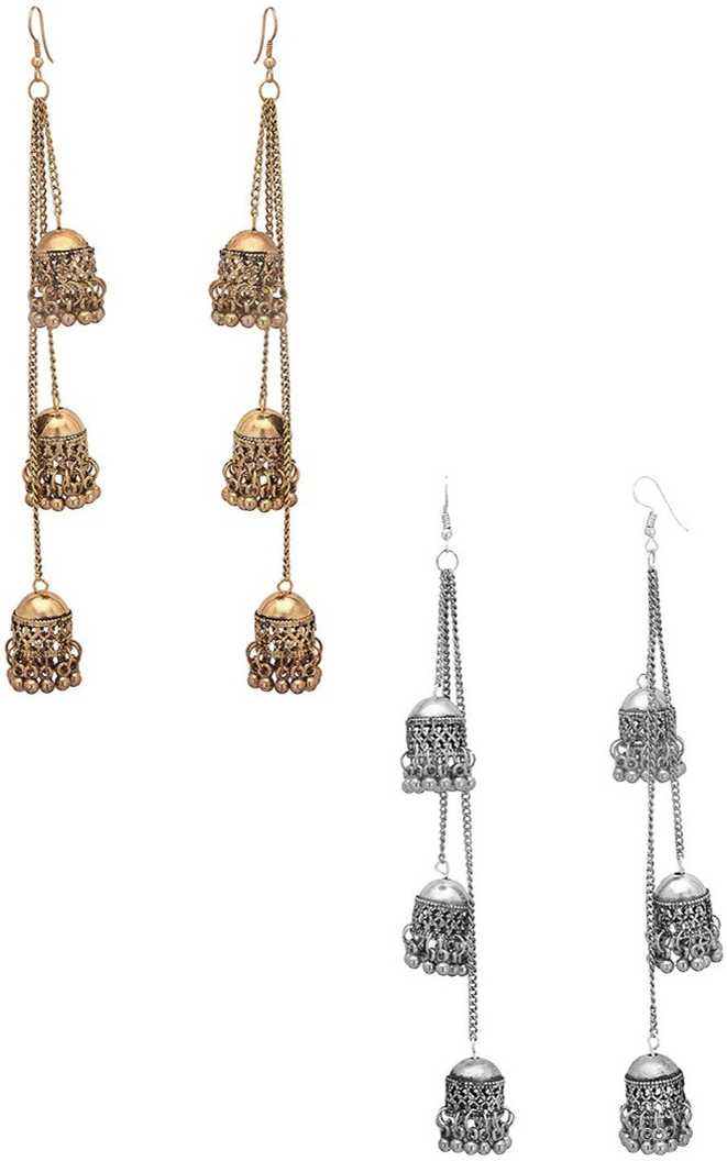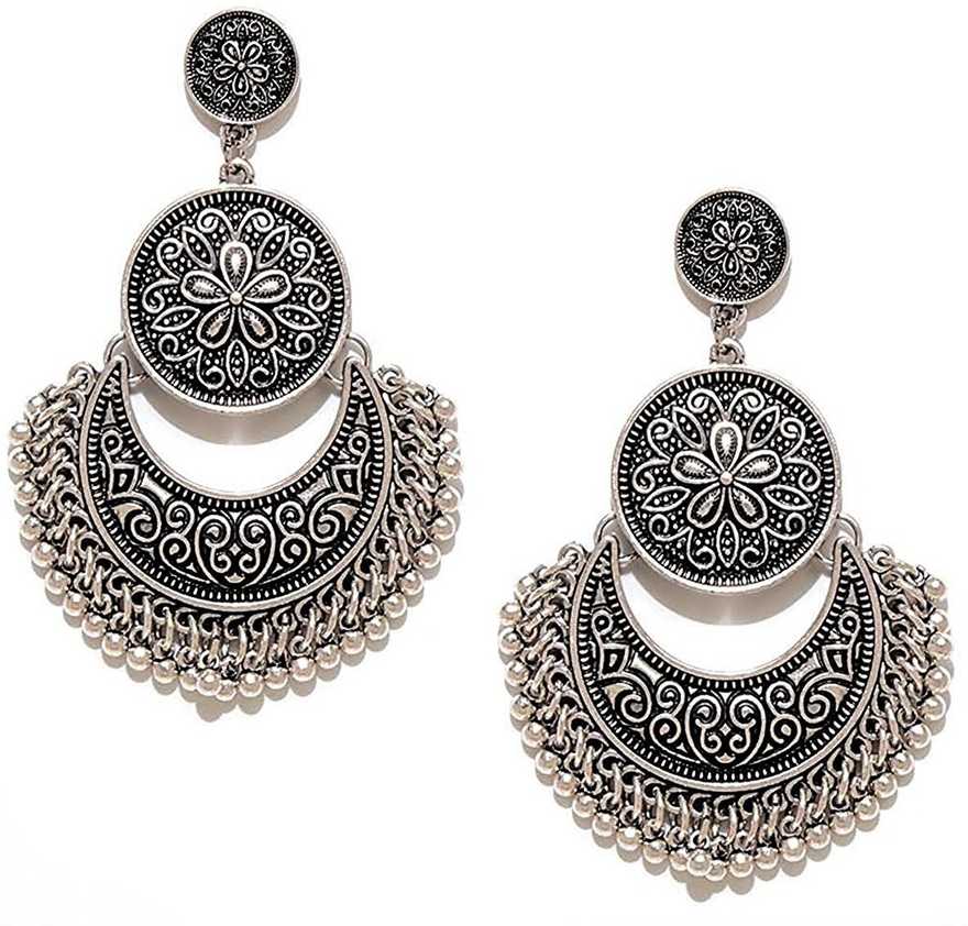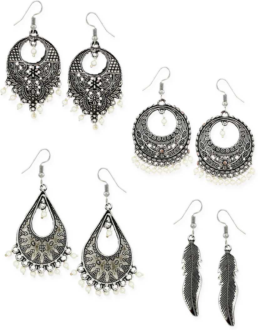 Combo of 4 Dark Antique Silver Zinc Chandbali Earring, Dangle Earring