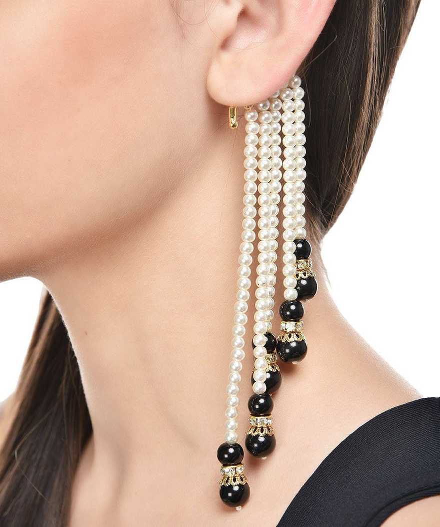 Party Wear Black Drops with Pearl Strings Alloy Cuff Earring