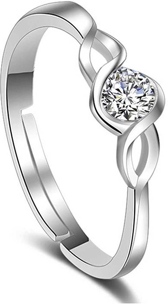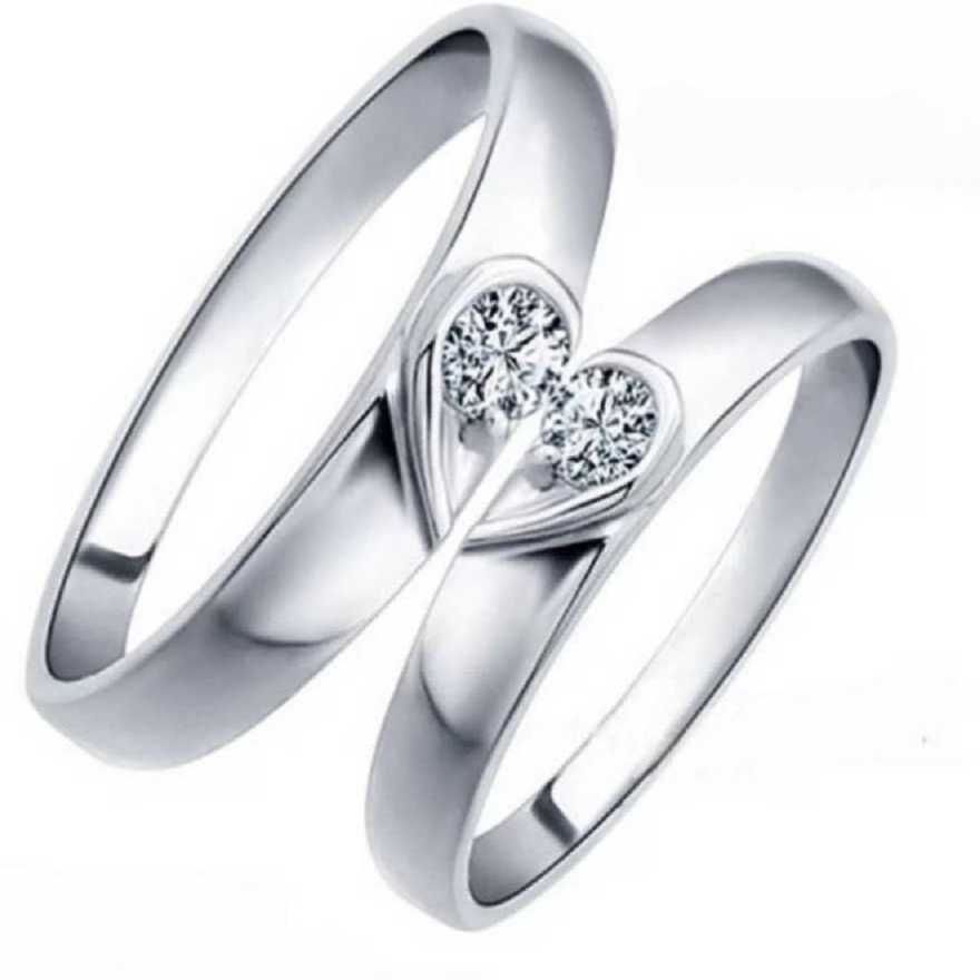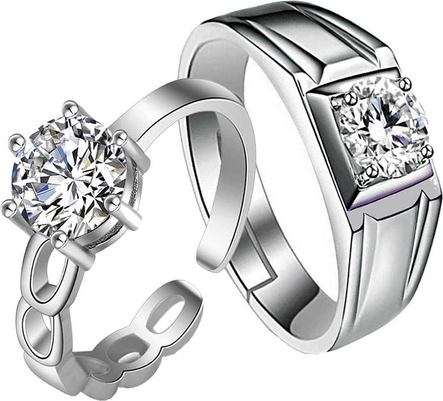 Classic CZ Solitaire Couple Ring Alloy Cubic Zirconia Rhodium Plated Ring S...