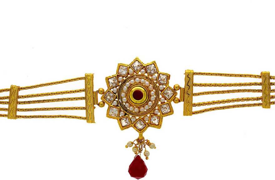 Brass, Metal, Stone Crystal Gold-plated Armlet