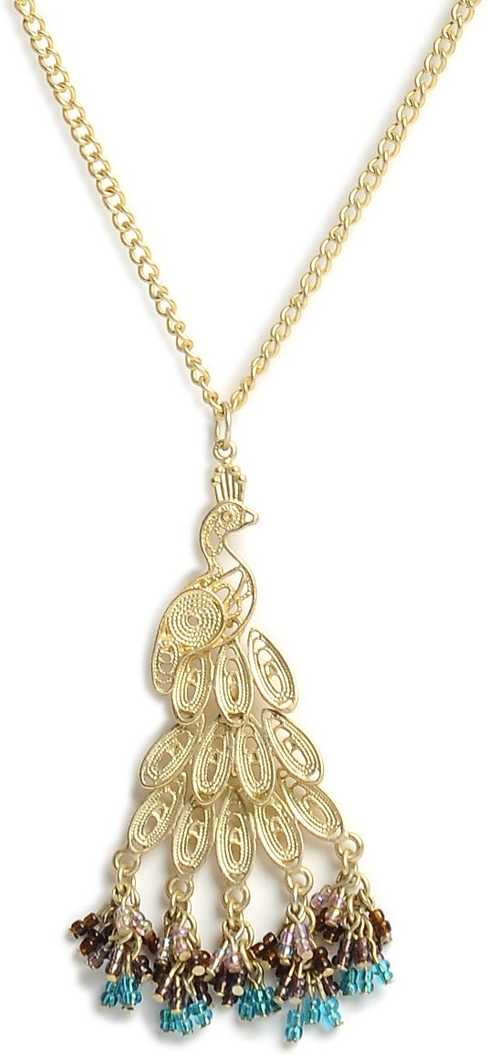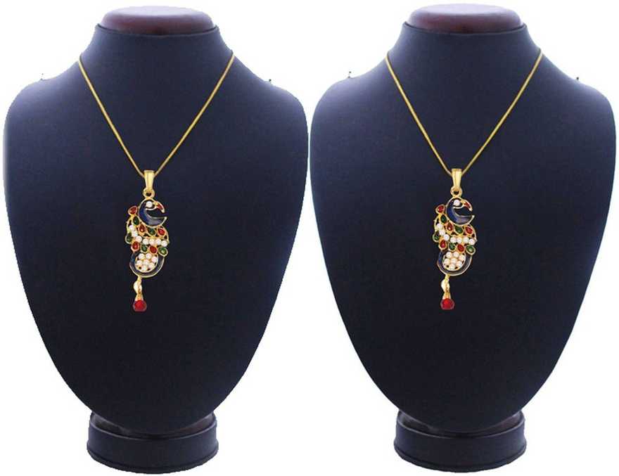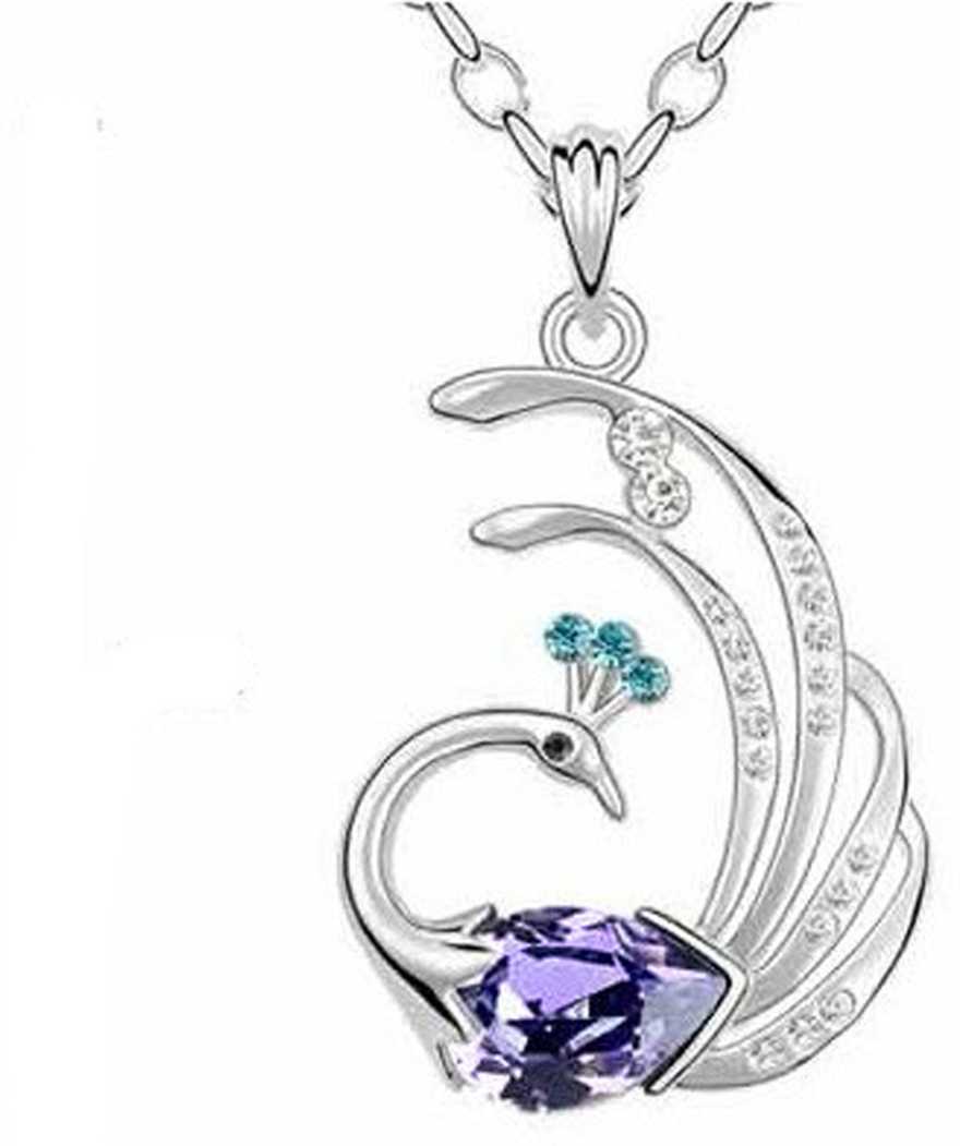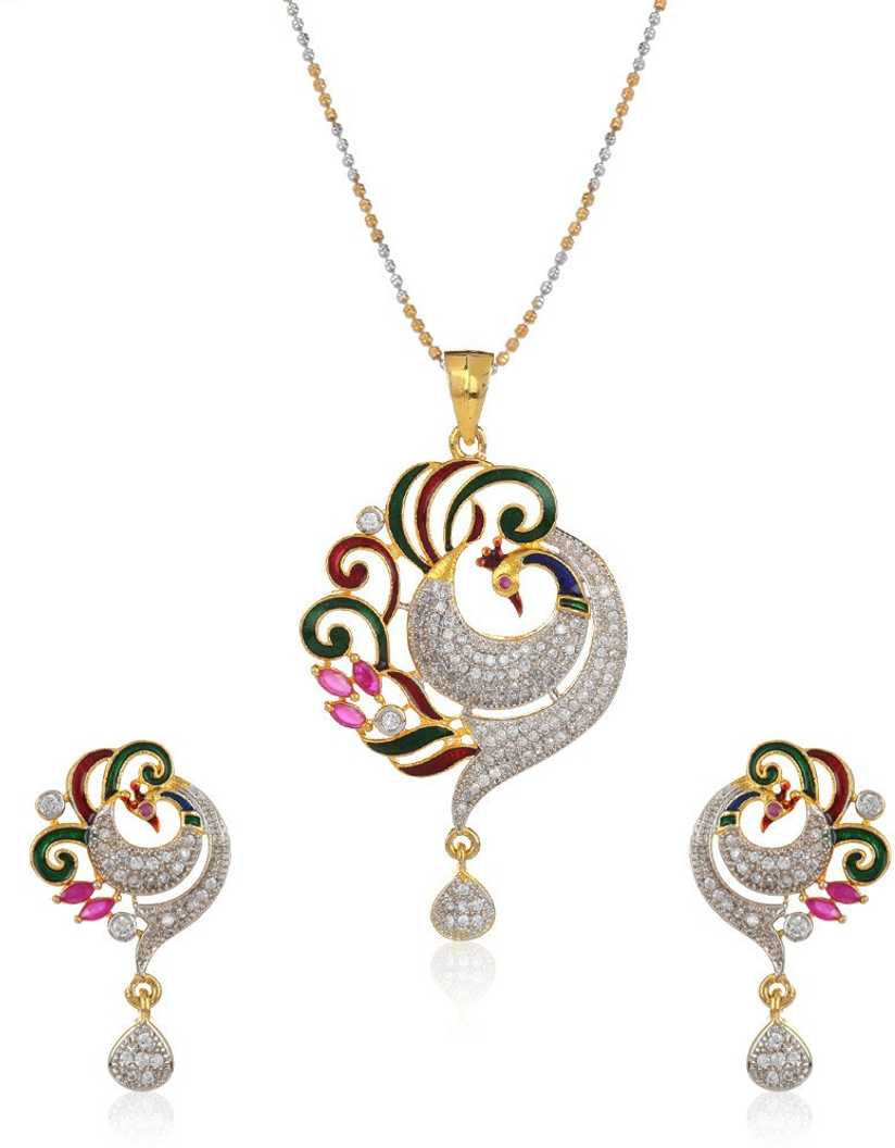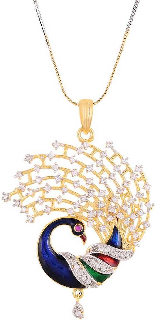 CZ Peacock Pendant Set with Chain for Women Gold-plated Cubic Zirconia Allo...