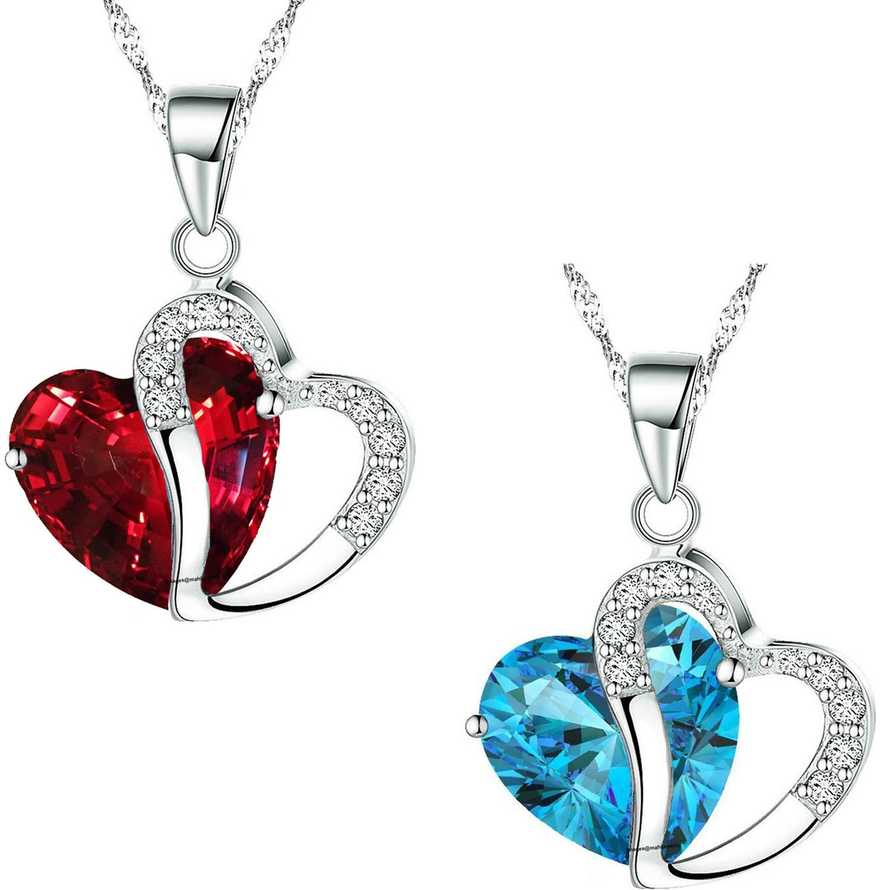 Combo of Red and Blue Heart Pendant with chain Rhodium Crystal Alloy Pendan...