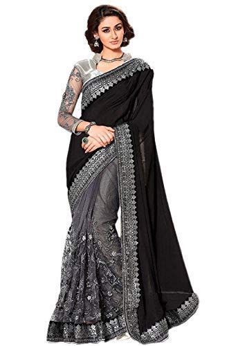 Pragati Fashion Hub Women's Lycra & Net Embroidery Sari with Blouse piece T...