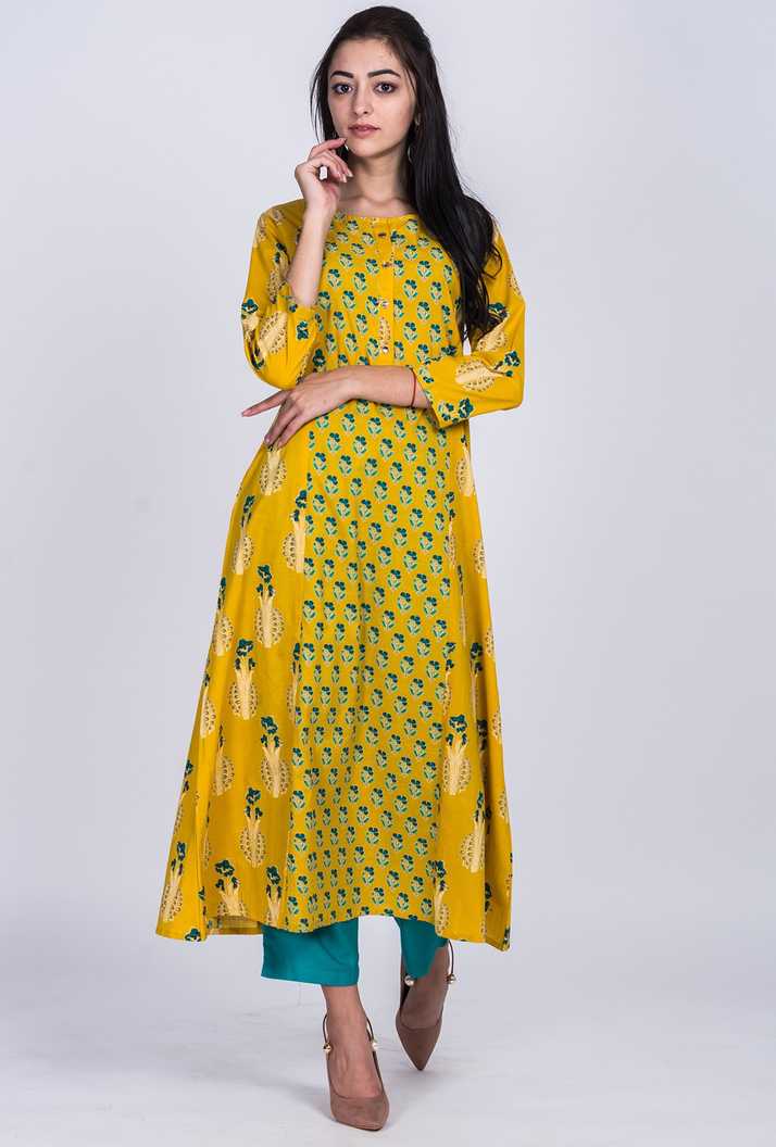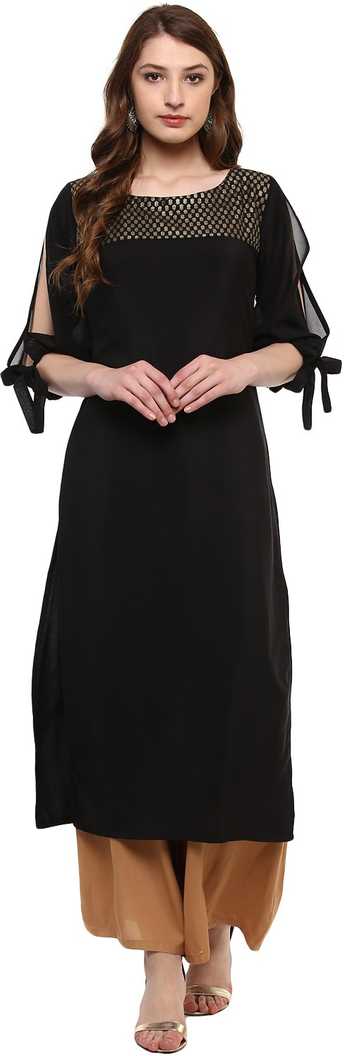Women Embroidered, Solid Straight Kurta (Yellow)