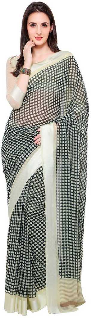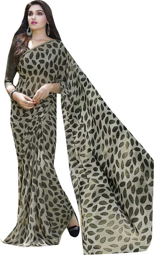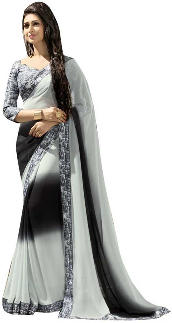 Printed Fashion Poly Georgette Saree (Grey, Black)