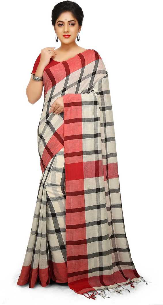 Woven Phulia Cotton Blend Saree (White, Black, Red)
