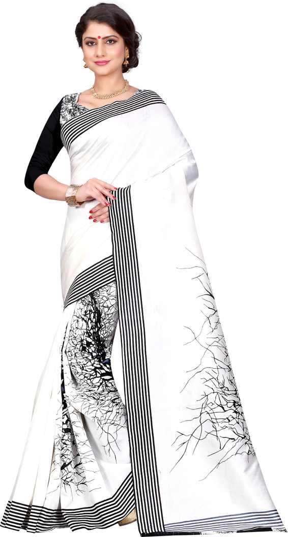 Printed Bhagalpuri Art Silk Saree (White)