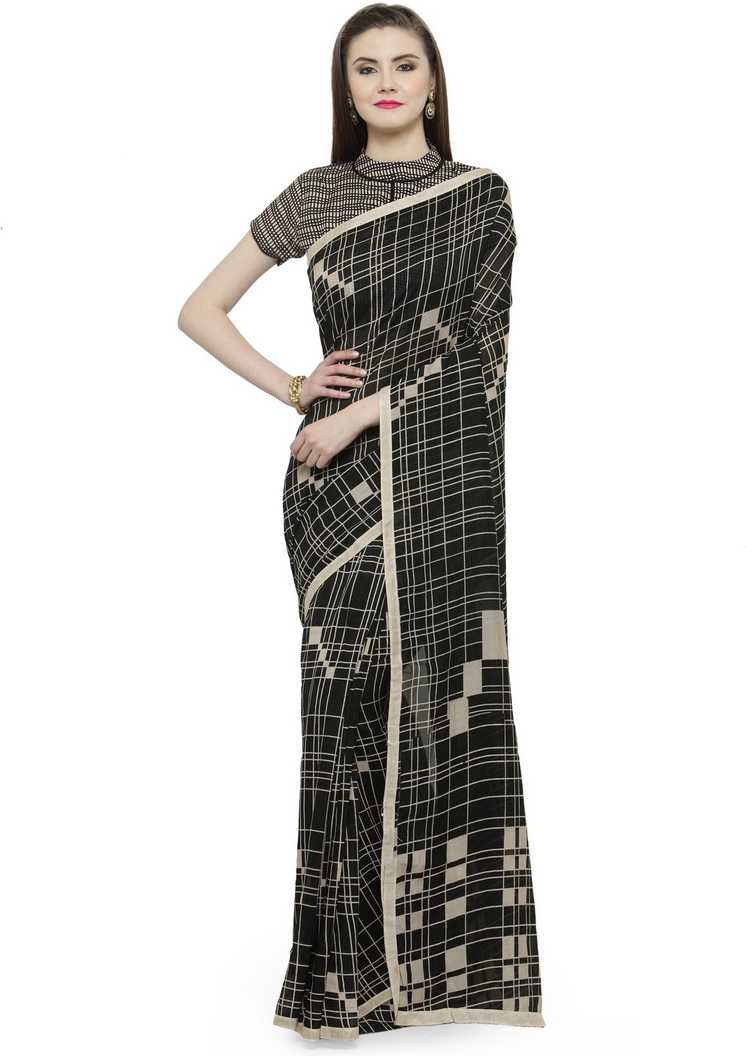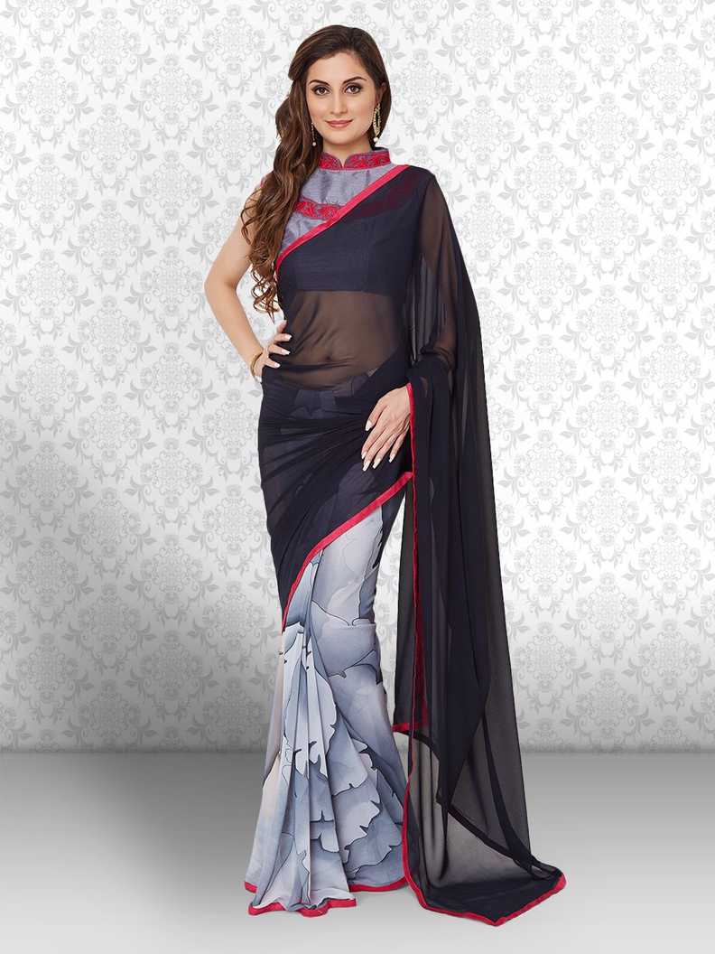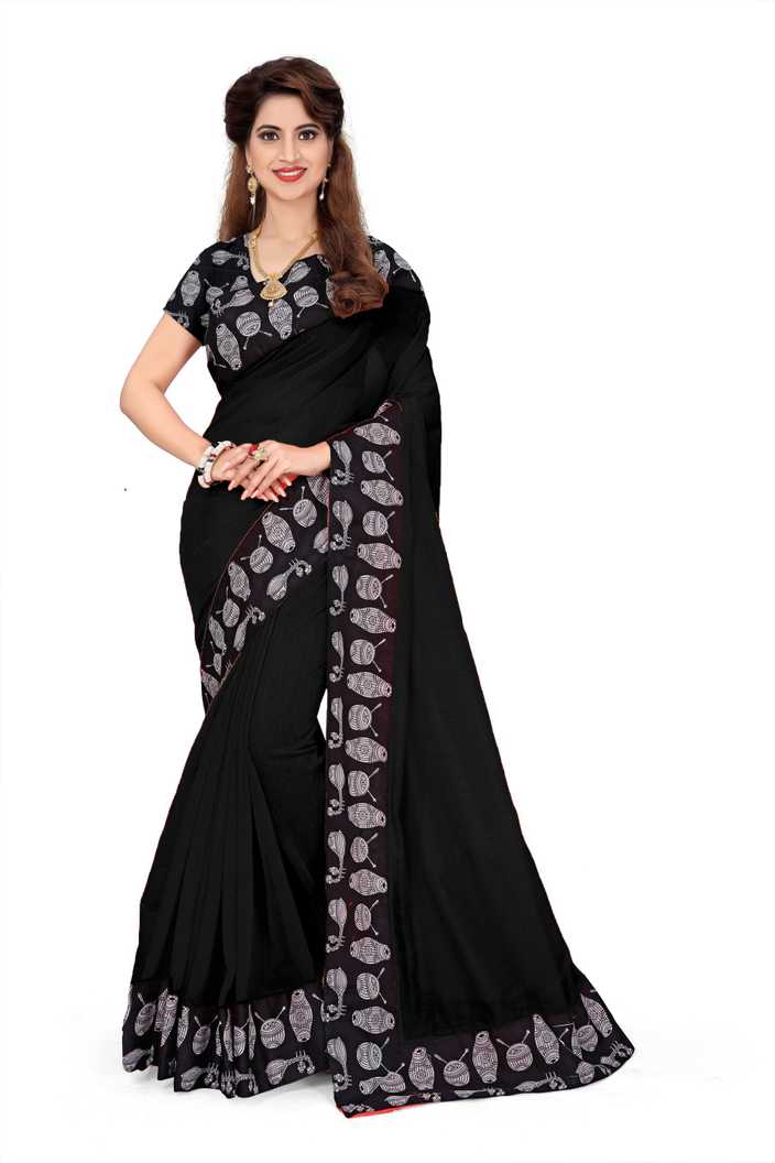 Printed Fashion Poly Georgette Saree (Black)