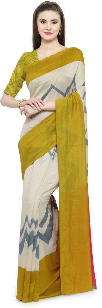 Printed Fashion Poly Crepe Saree (Cream)