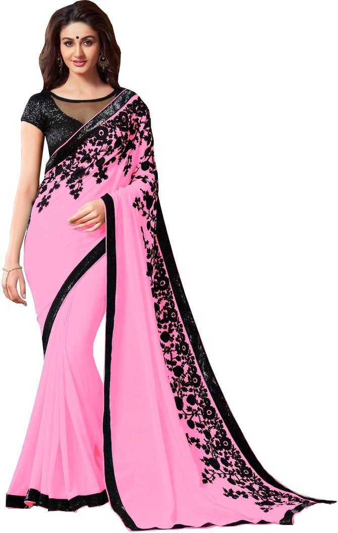Embroidered Bollywood Georgette Saree (Pink, Black)