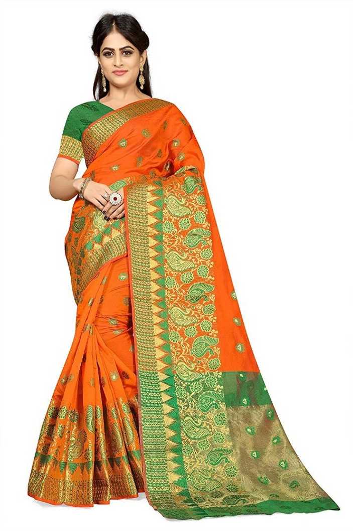 Self Design Bollywood Banarasi Silk Saree (Orange)