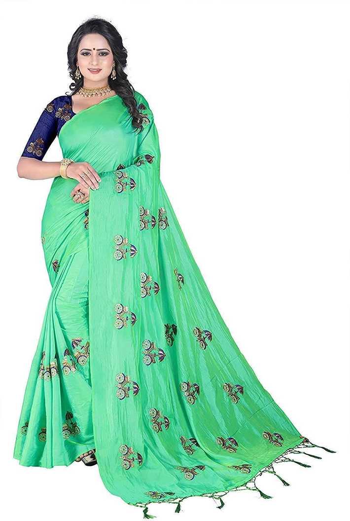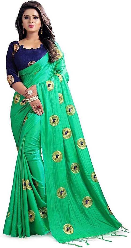 Embroidered Daily Wear Poly Silk Saree (Green)