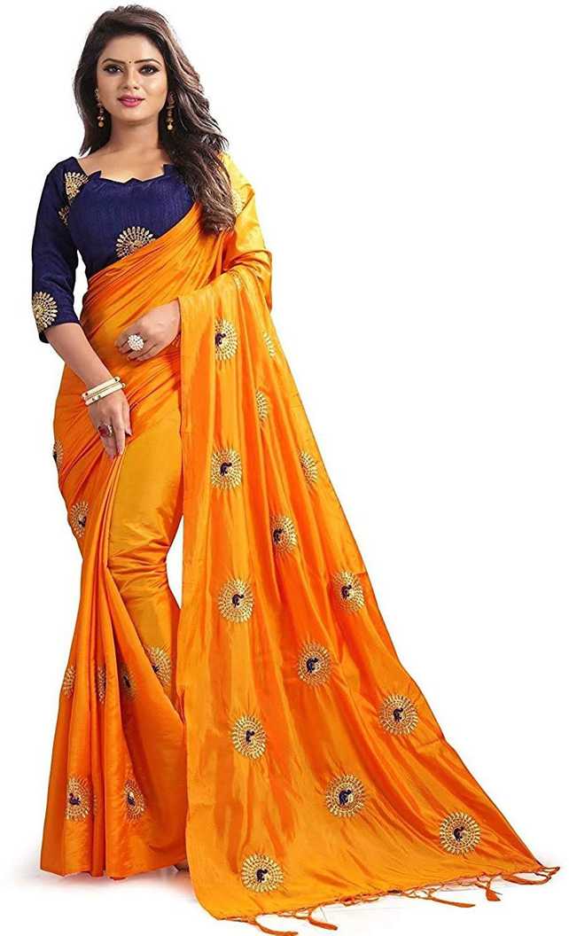 Embroidered Daily Wear Poly Silk Saree (Orange)
