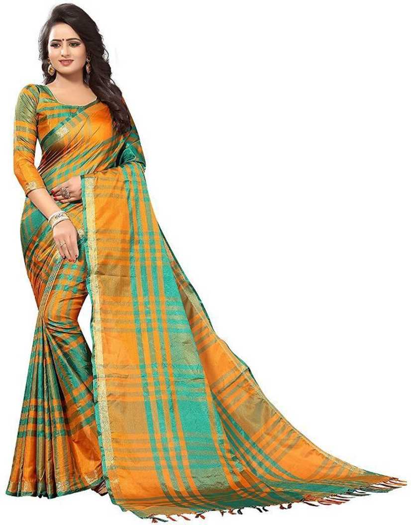 Woven Fashion Cotton Silk Saree (Green, Orange)