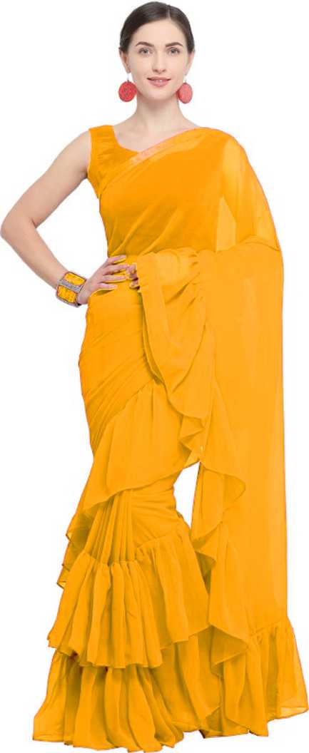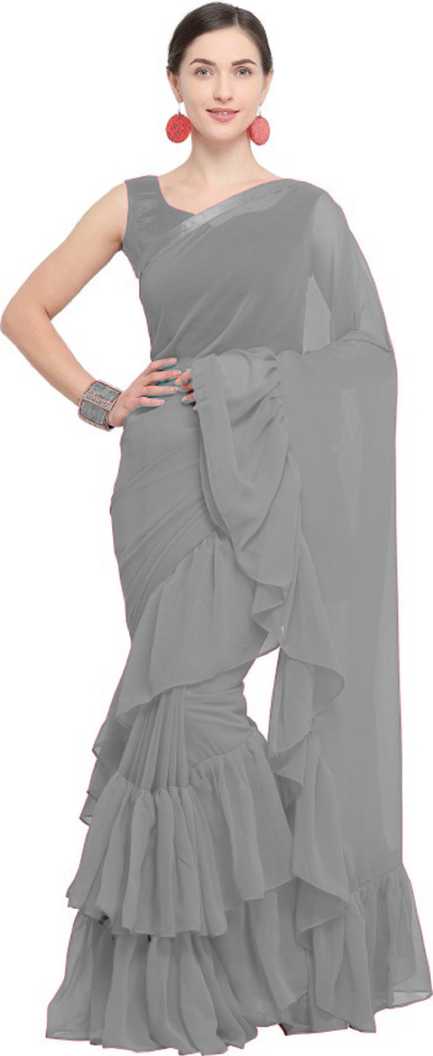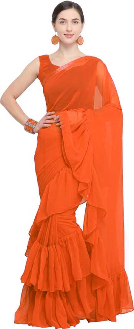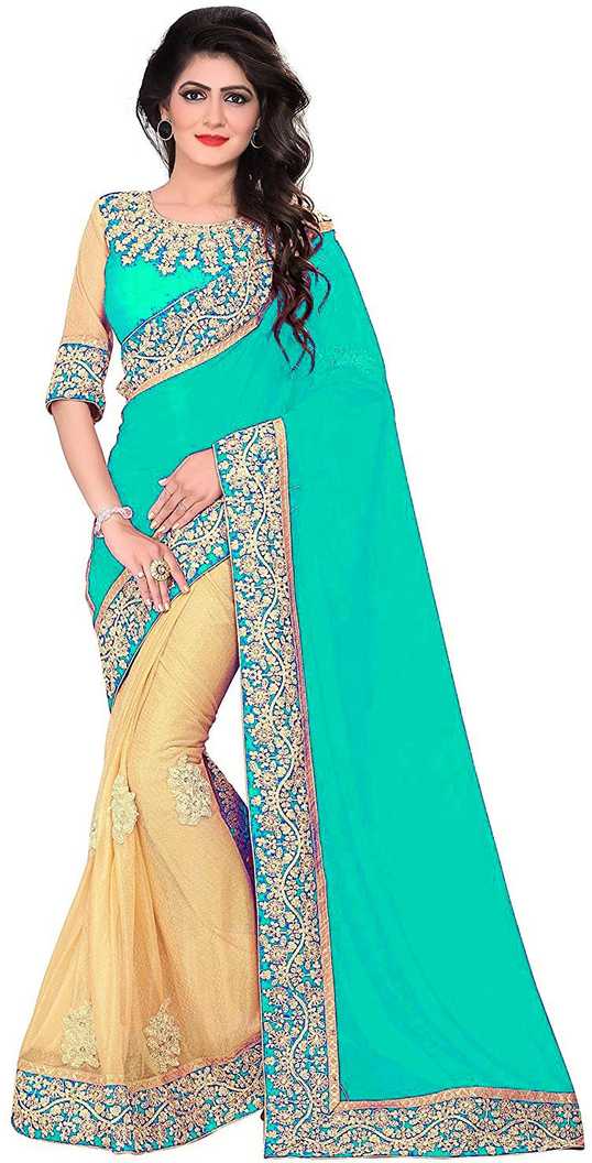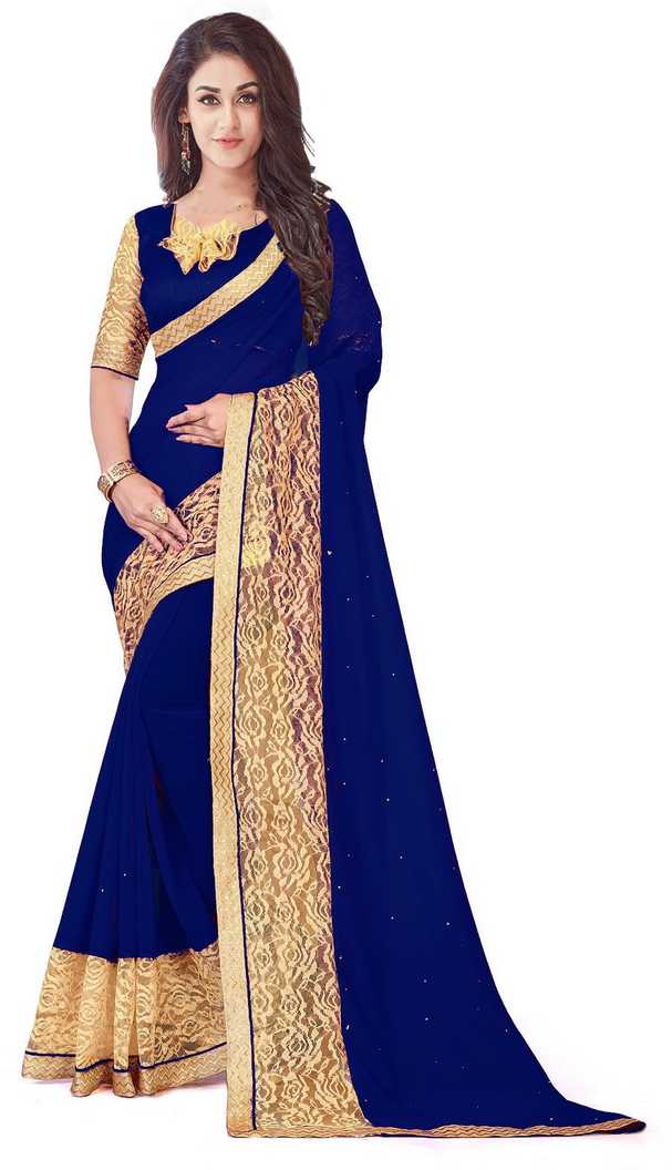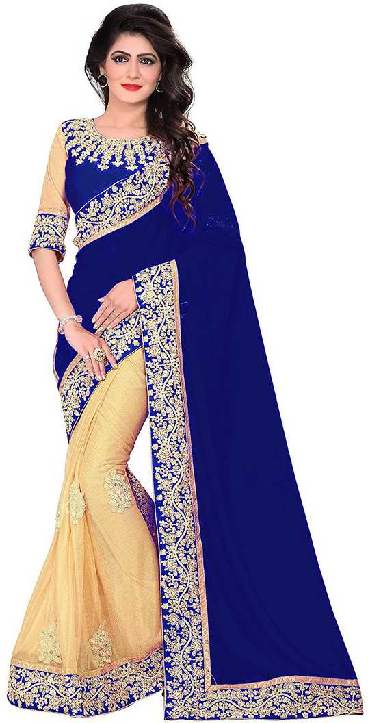 Applique, Self Design Bollywood Poly Georgette, Cotton Blend Saree (Blue, ...
