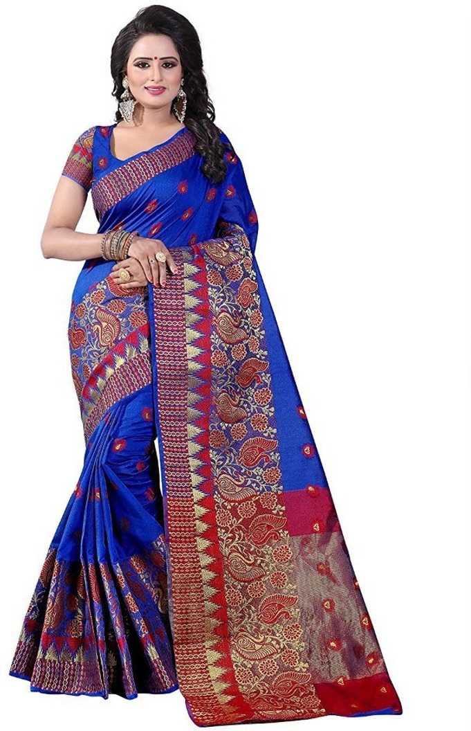 Self Design Bollywood Banarasi Silk Saree (Blue)