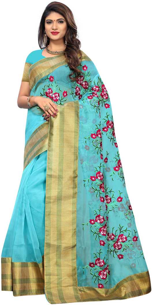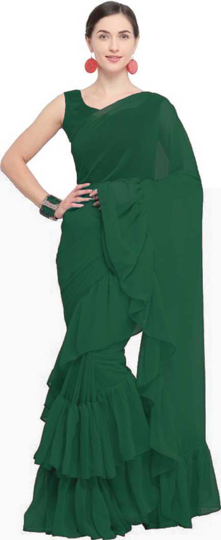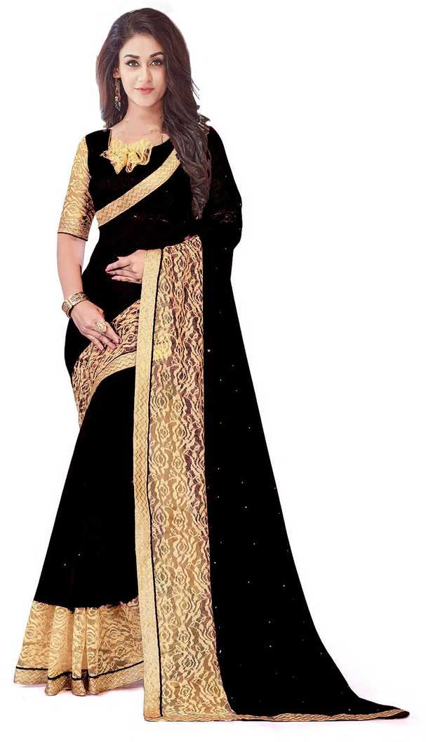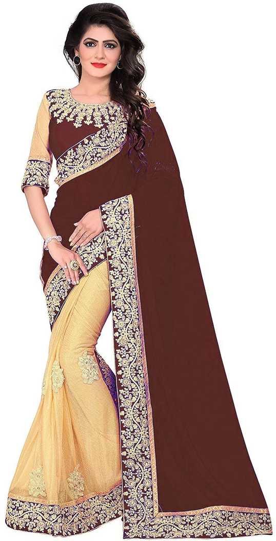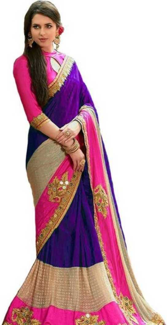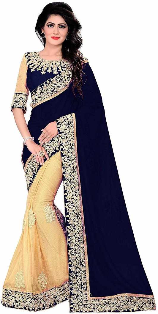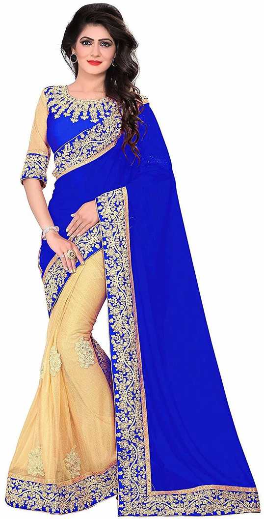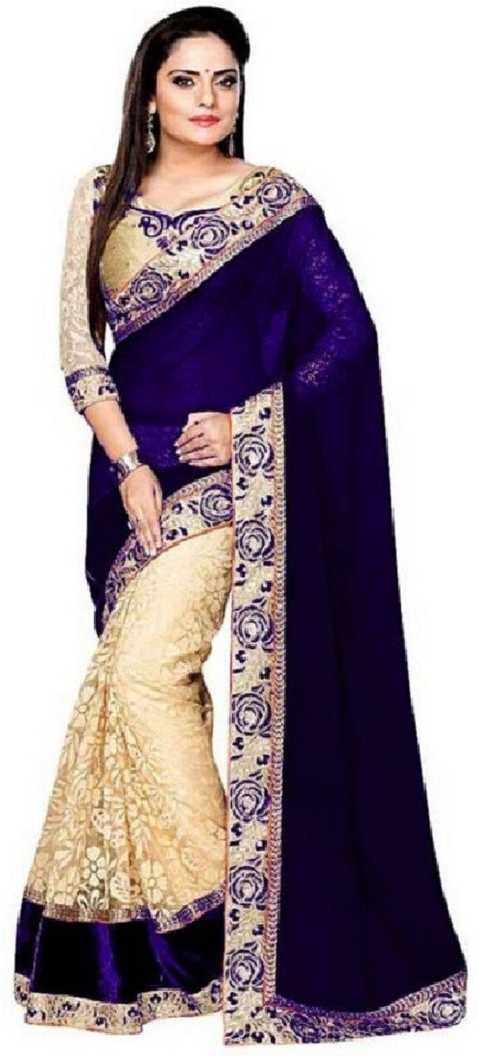 Applique, Self Design Bollywood Poly Georgette, Cotton Blend Saree (Dark B...