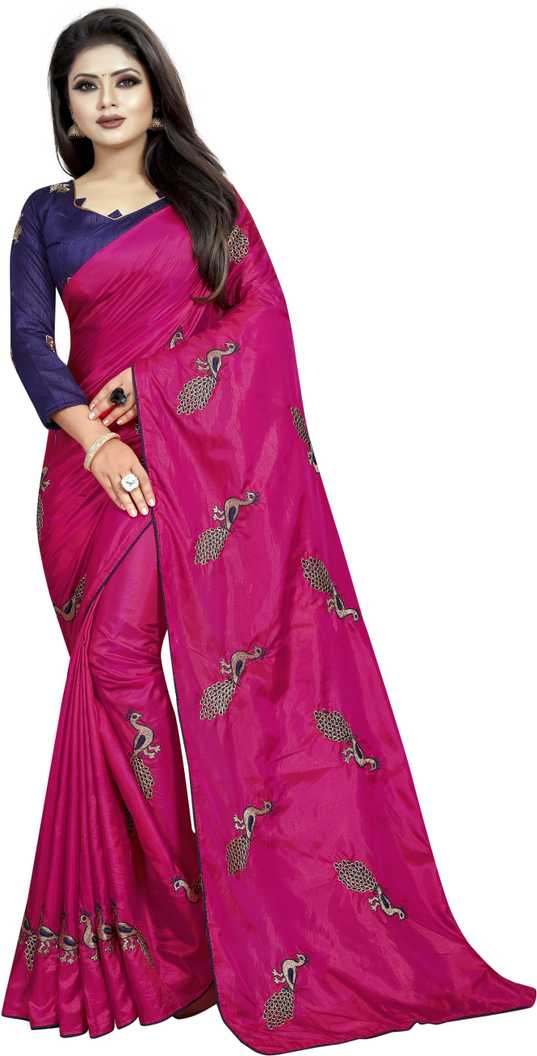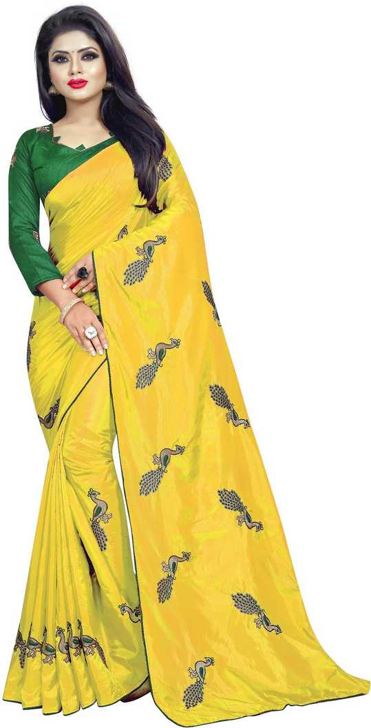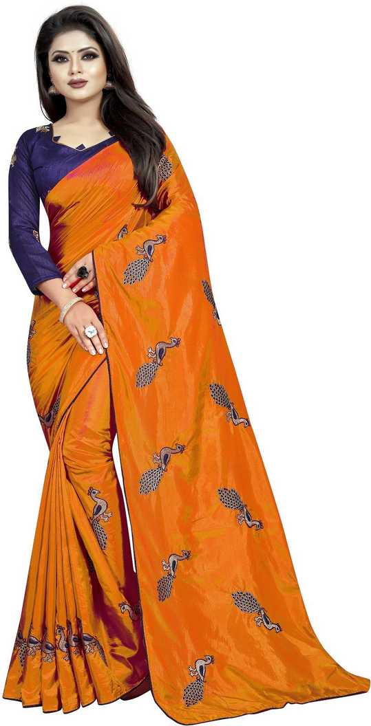 Embroidered Bollywood Poly Silk Saree (Pack of 2, Orange)