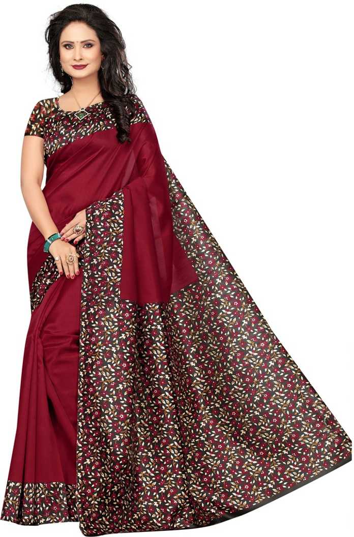 Printed Kalamkari Poly Silk Saree (Maroon)#JustHere