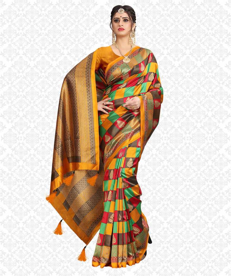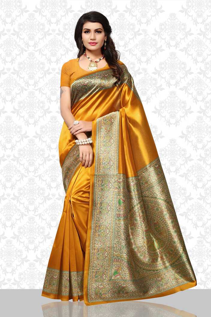 Printed Daily Wear Poly Silk Saree (Mustard)#JustHere