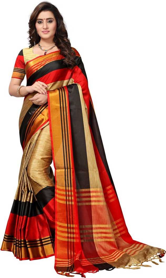Self Design Fashion Poly Silk Saree (Beige, Black)