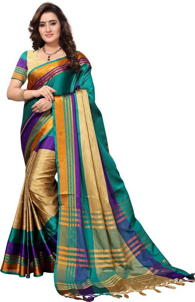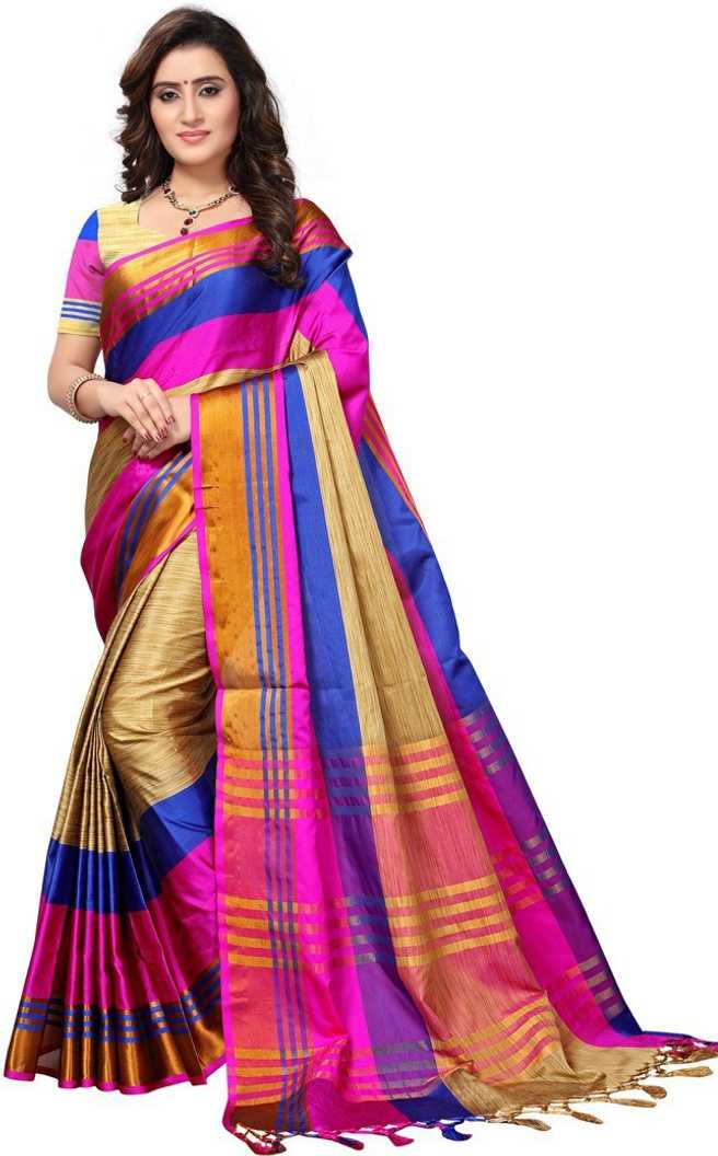 Striped Daily Wear Poly Georgette Saree (Multicolor)