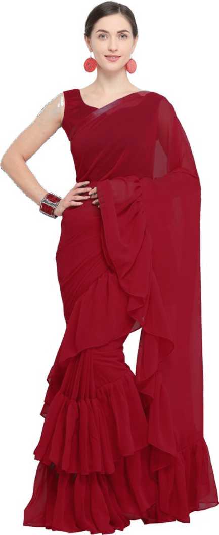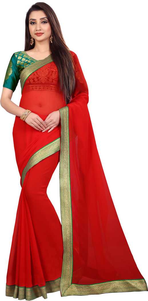 Solid Fashion Georgette Saree (Red)